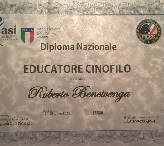 Nel 2015 si diploma come Educatore Cinofilo nazionale FICSS.